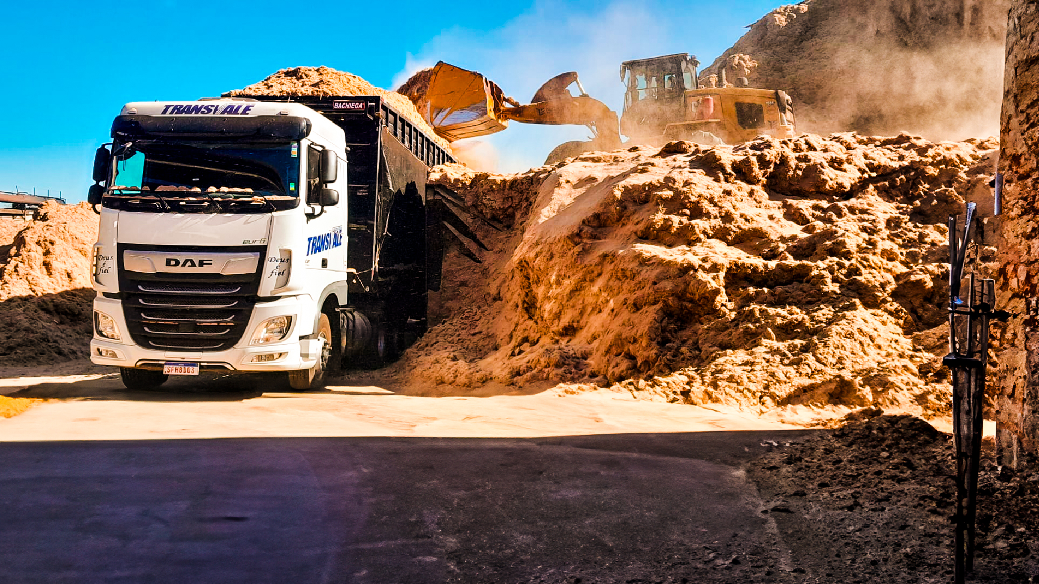Movimentação eficiente de resíduos orgânicos e biomassa energética, otimizando logística para usinas e energia renovável.